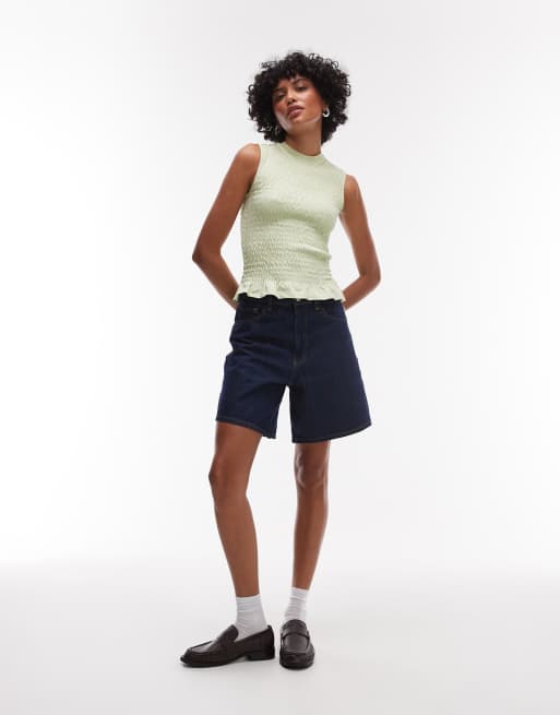 Topshop – Ciemnoniebieskie jeansowe luźne jortsy
