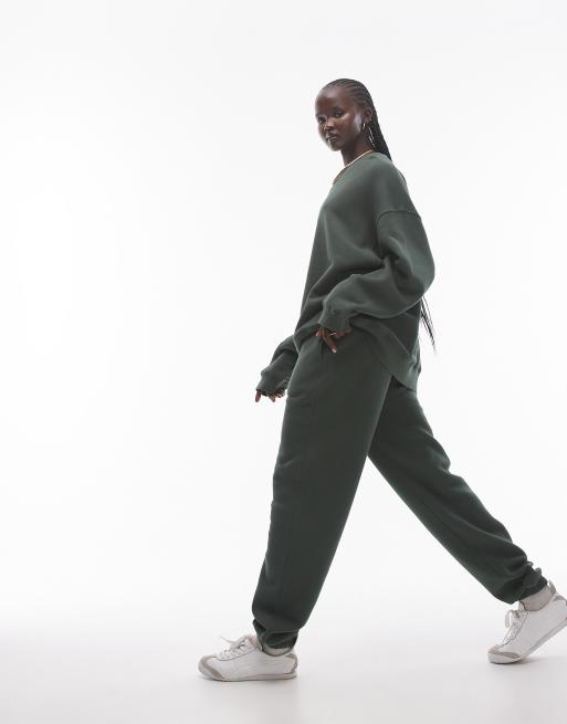 Topshop – Ciemnozielone joggersy z mankietami, część zestawu