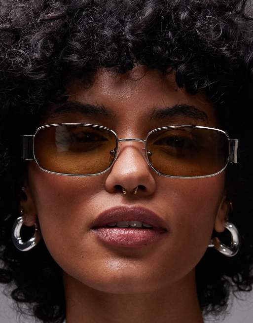 Topshop – Crete – Złote prostokątne okulary przeciwsłoneczne z metalowymi oprawkami i zielonymi soczewkami