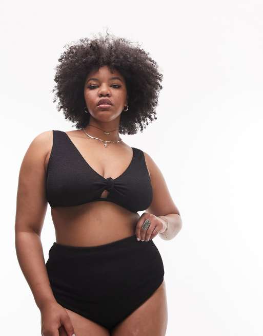 Topshop Curve – Czarna marszczona góra od bikini z supełkiem z przodu