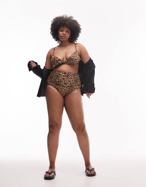 Topshop Curve – Kolorowy dół od bikini z podwyższonym stanem w panterkę