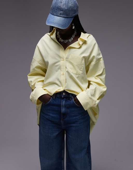 Topshop – Cytrynowa popelinowa koszula super oversize