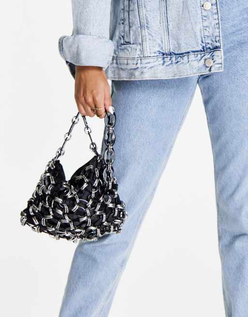 Topshop – Czarna akrylowa torebka na ramię z łańcuszkiem