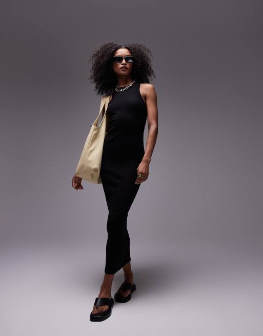 Topshop – Czarna dżersejowa sukienka midi o fasonie bokserki