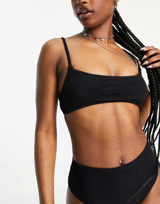 Topshop – Czarna góra od bikini na ramiączkach z marszczonej tkaniny
