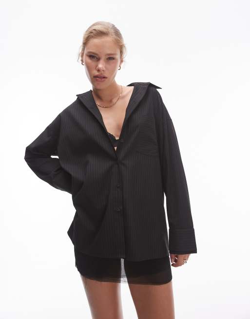Topshop – Czarna koszula oversize w prążki