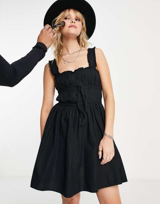 Topshop – Czarna marszczona sukienka mini z popeliny