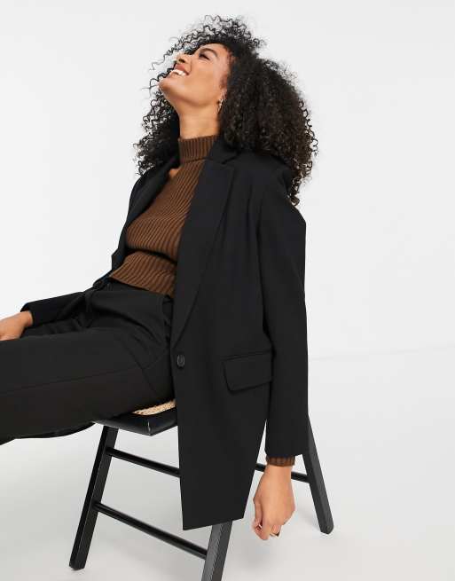 Topshop – Czarna marynarka jednorzędowa z materiału ponte