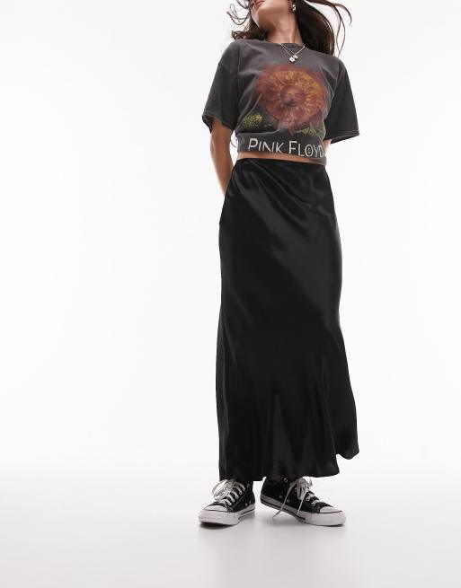 Topshop – Czarna satynowa spódnica midi cięta ze skosu