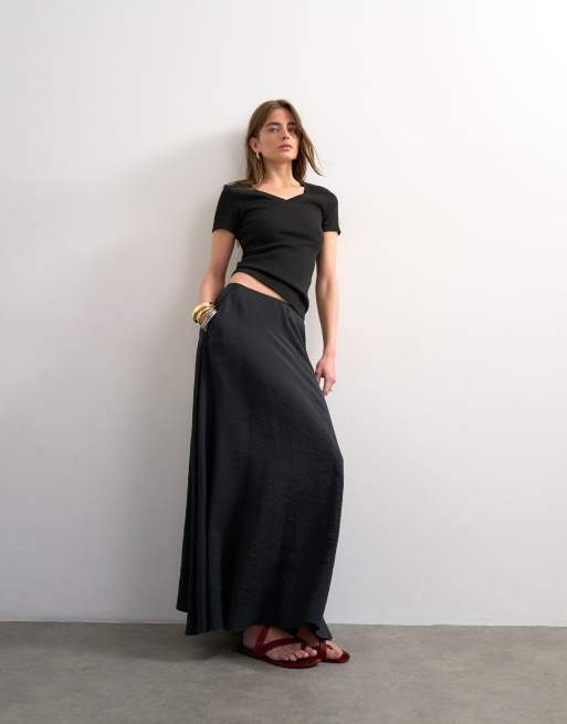 Topshop – Czarna spódnica maxi z pełnego koła z materiału cupro