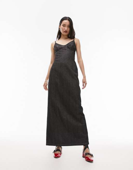 Topshop – Czarna sukienka jeansowa na ramiączkach