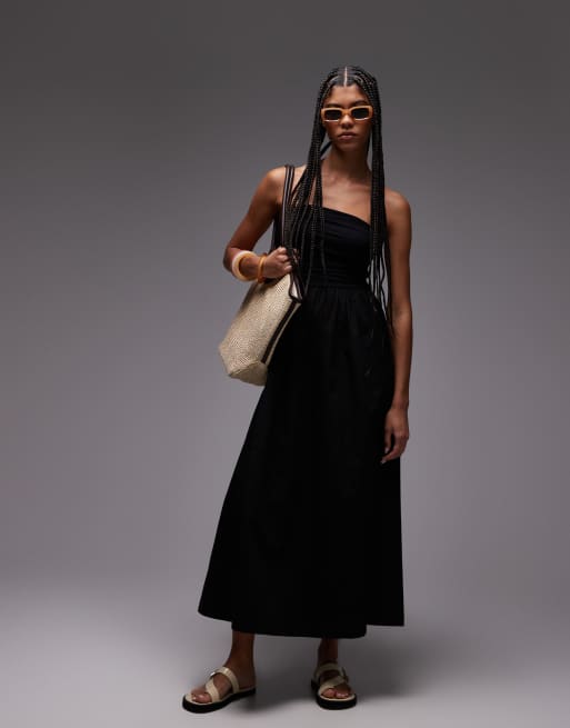 Topshop – Czarna sukienka maxi z mieszanki popeliny z dekoltem bandeau