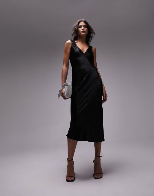 Topshop – Czarna sukienka midi na ramiączkach