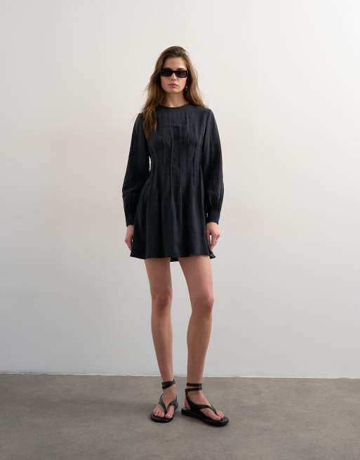 Topshop – Czarna sukienka mini z materiału cupro, z zaszewkami w talii