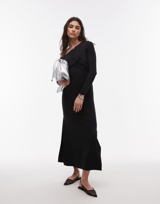 Topshop – Czarna sukienka z długimi rękawami i skręceniem z przodu