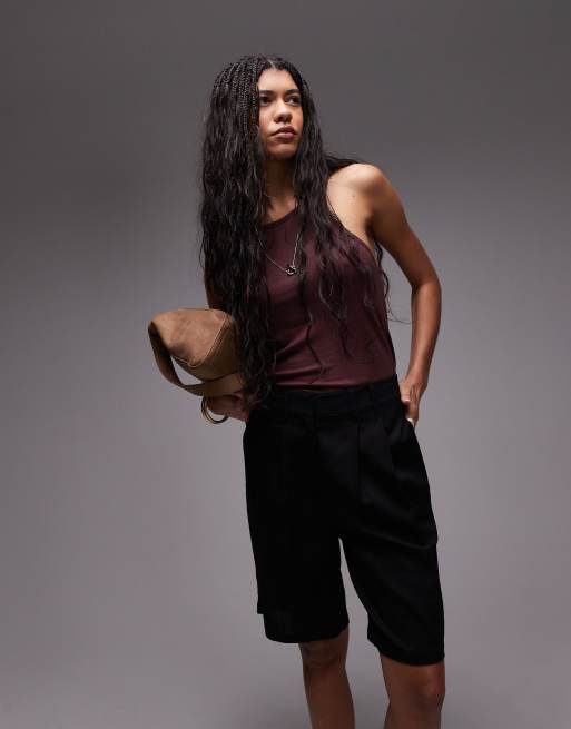 Topshop – Czarne lniane szorty o wydłużonym fasonie