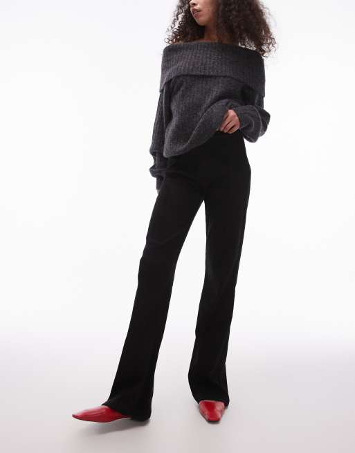 Topshop – Czarne prążkowane spodnie z prostymi nogawkami i zaszewkami