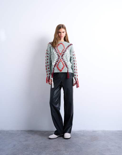 Topshop – Czarne spodnie z imitacji skóry z naszywką w kowbojskim stylu