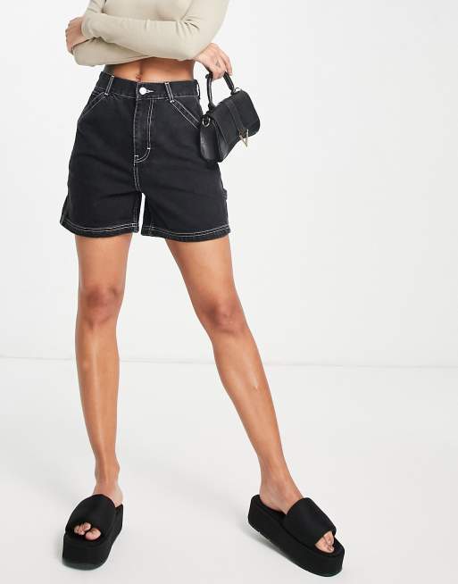 Topshop – Czarne szorty w stylu roboczym z efektem sprania