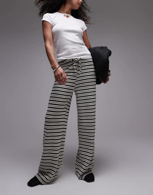 Topshop – Czarno-białe spodnie z szerokimi nogawkami w fakturowane paski