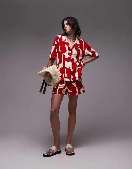 Topshop – Czerwone szorty z tkaniny frotté w abstrakcyjny wzór, część zestawu