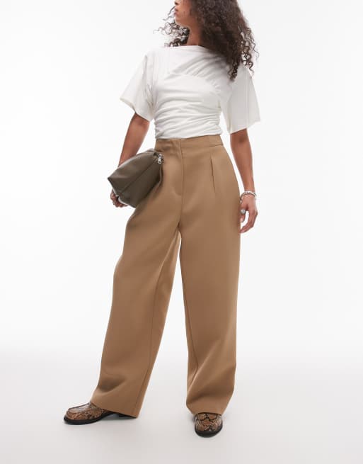 Topshop – Dopasowane brązowoszare spodnie o bardzo luźnym kroju z gładką talią, część zestawu