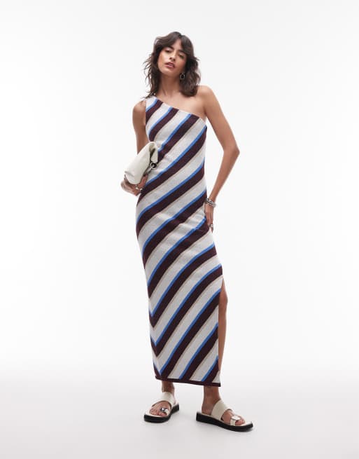 Topshop – Dzianinowa sukienka maxi na jedno ramię w paski
