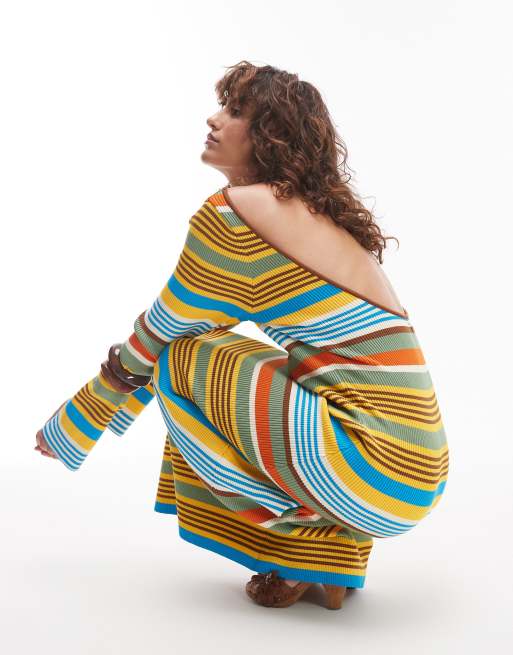Topshop – Dzianinowa sukienka maxi z wycięciem U na plecach w kolorowe paski