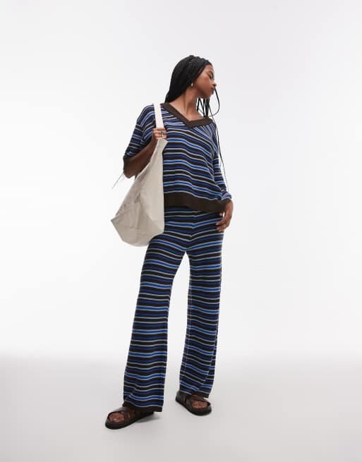 Topshop – Dzianinowe spodnie z szerokimi nogawkami w niebieskie paski, część zestawu