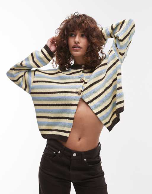Topshop – Dzianinowy kardigan o pudełkowym kroju w kolorowe paski