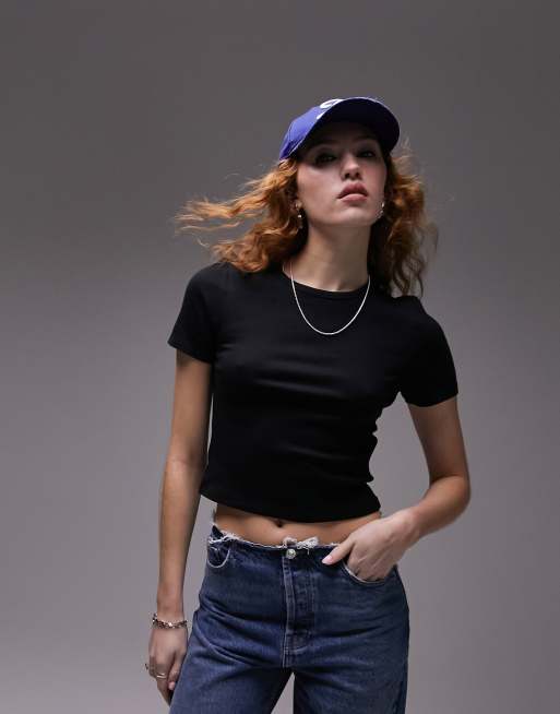 Topshop – Everyday – Czarny T-shirt o krótkim fasonie