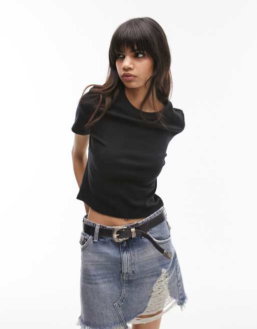 Topshop – Everyday – Czarny T-shirt o krótkim fasonie