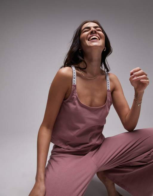 Topshop – Fioletoworóżowa piżama z dżerseju z logo