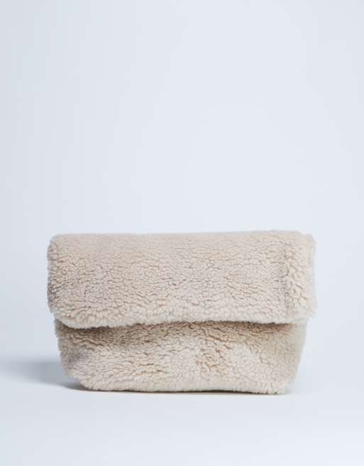 Topshop – Georgia – Beżowa kopertówka do ręki z kożuszka z klapką