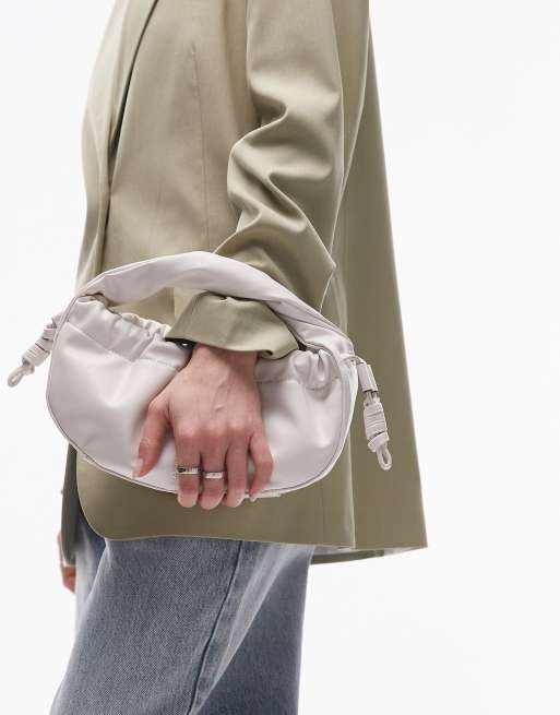 Topshop – Giulia – Marszczona biała torebka do ręki ze skręconym uchwytem