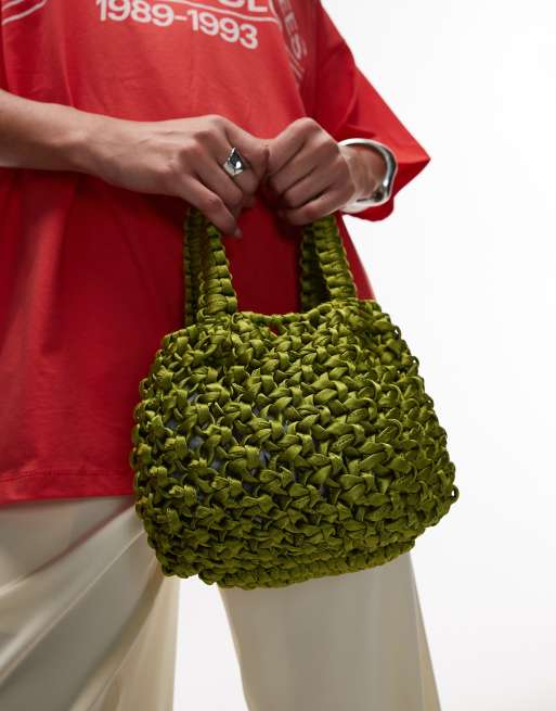 Topshop – Gracie – Zielona szydełkowa torebka do ręki