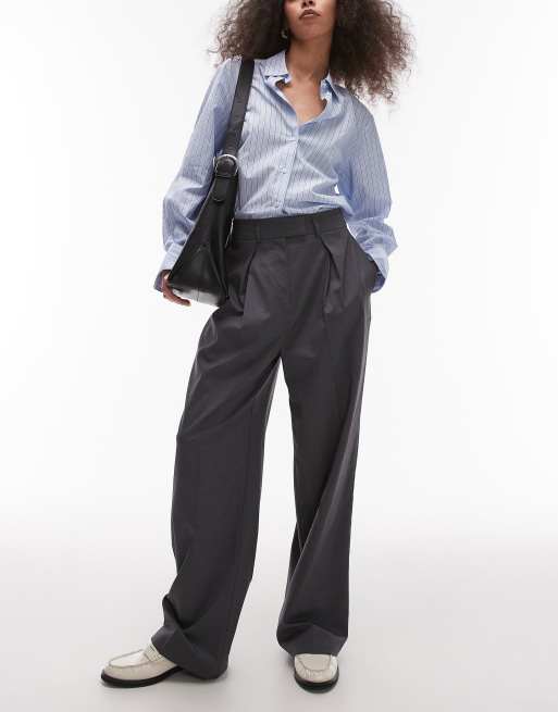 Topshop – Grafitowe, dopasowane w talii spodnie z szerokimi nogawkami, część zestawu