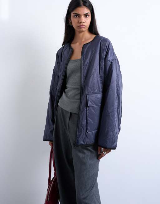 Topshop – Granatowa podszyta polarem kurtka spodnia bez kołnierza