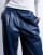 Topshop – Granatowe spodnie z imitacji skóry z wysokim stanem i prostymi nogawkami z zakładkami