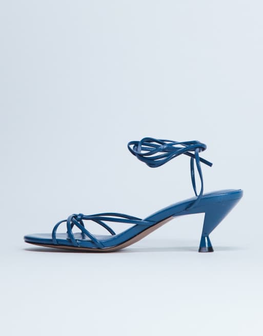 Topshop – Itzel – Turkusowe sandały na średnim obcasie z wiązaniem