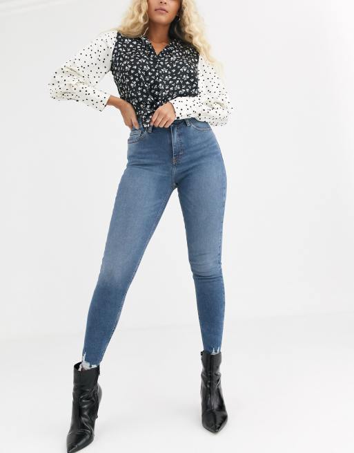 Topshop – Jamie – Niebieskie jeansy z surowym wykończeniem