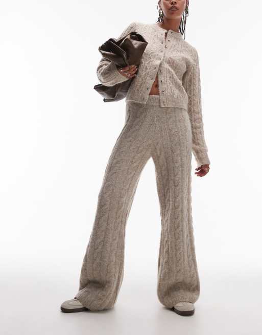 Topshop – Jasnobeżowe spodnie z puszystej dzianiny o warkoczowym splocie