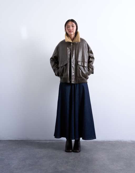 Topshop – Jeansowa spódnica maxi z karczkiem z przodu w kolorze indygo