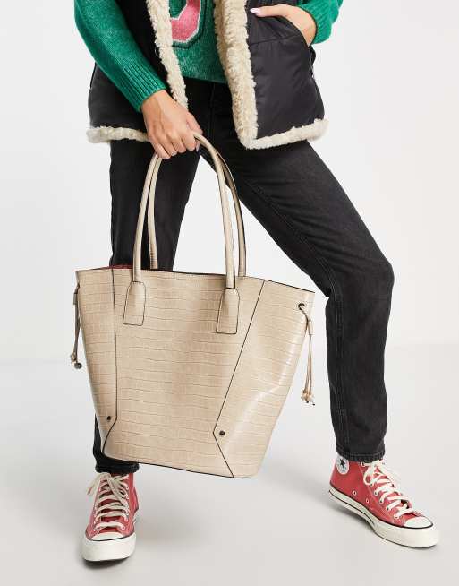 Topshop – Kamiennobeżowa duża fakturowana torebka typu tote