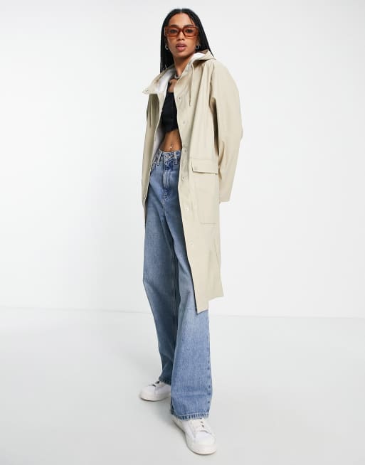 Topshop – Karmelowy płaszcz przeciwdeszczowy średniej długości z kapturem