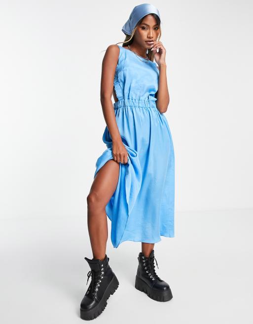 Topshop – Kobaltowa sukienka midi z odkrytymi plecami
