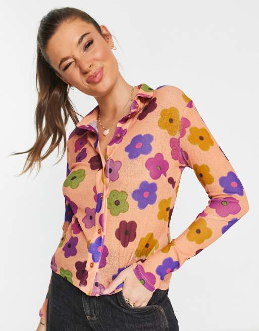 Topshop – Kolorowa koszula z siateczki w kwiaty