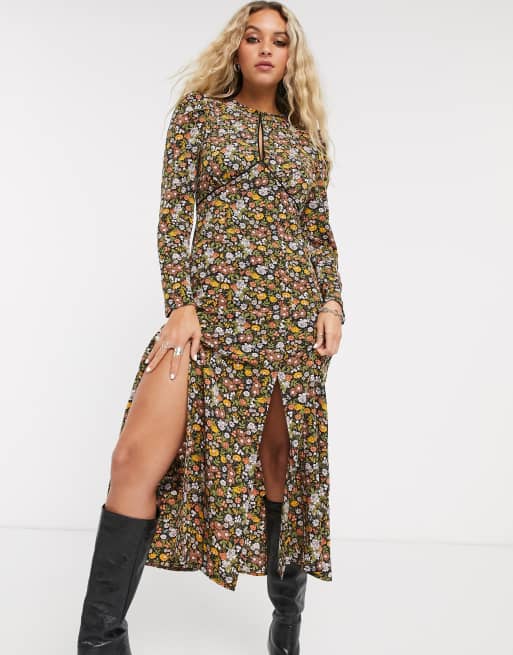 Topshop – Kolorowa sukienka midi z rozcięciem