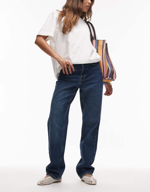 Topshop – Kort – Niebieskie jeansy o prostym kroju z podwyższonym stanem