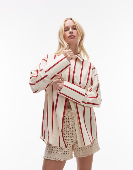 Topshop – Kremowa koszula oversize w paski z szerokimi mankietami